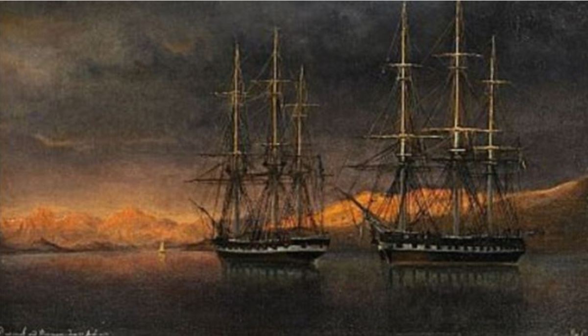 Fregatten Josephine och korvetten Lagerbielke. Målning av Marcus Larsson 1851.